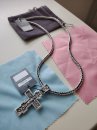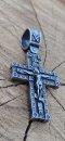 Зображено на фото: Розп'яття Христове. Архангел Михаїл. Срібний натільний православний хрестик з чорнінням.Довжина: 3.3 см